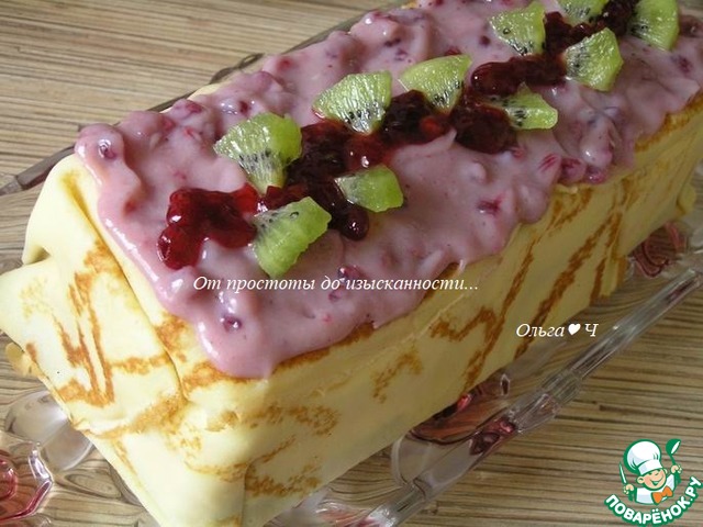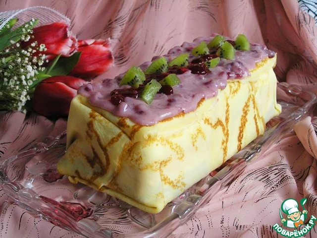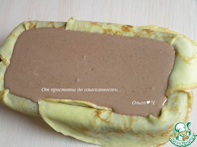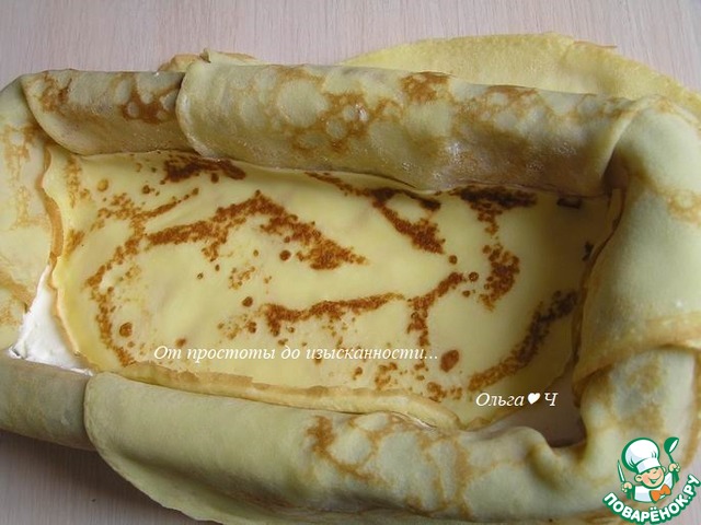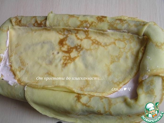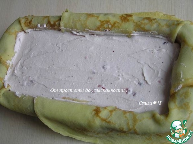 Затем накройте свисающими краями блинчиков и уберите в холодильник до полного застывания.