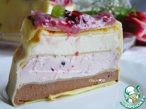 Поздравляю всех с началом недели масленицы! И представляю вашему вниманию вкуснейший блинный террин! Сочетание творожного крема с брусничным соусом, двумя видами шоколада и свежими фруктами в обрамлении тонких блинчиков - нежнейшее лакомство! Попробуйте!