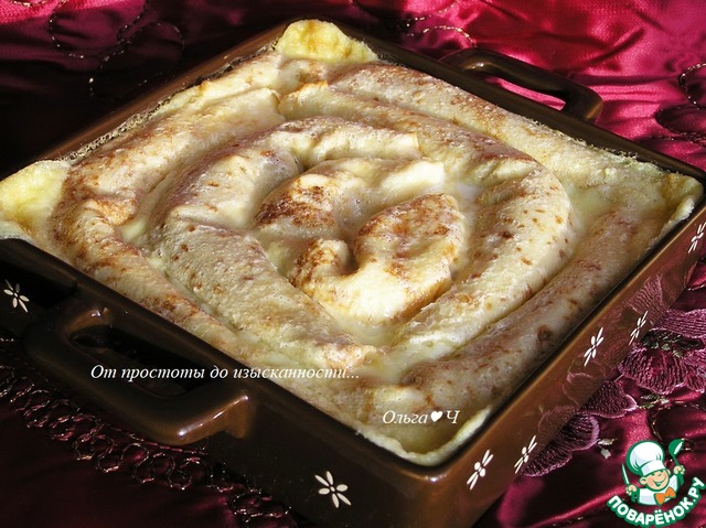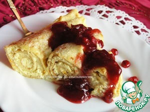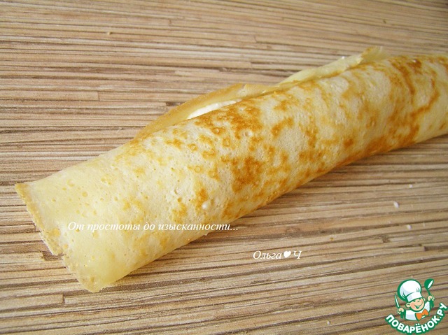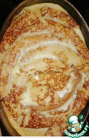 Рецепт «Блинчики с творогом, запеченные в сливках»: