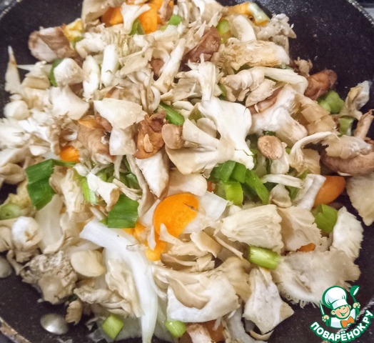 Рецепт «Шиитаке с сыром панир и арахисом»: