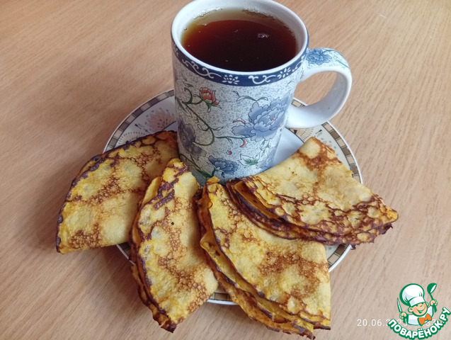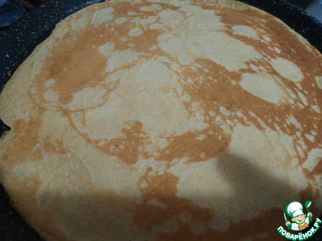 Жарить блинчики на хорошо разогретой сковороде. Я её смазывала слегка перед каждым блинчиком.
