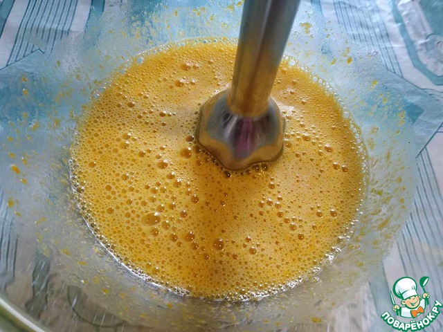 Яйца, тыквенное пюре, соль, сахарозаменитель или сахар, ванильный сахар смешать в миске. Я использовала блендер, чтобы не было комочков.