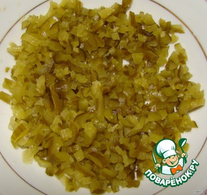 Второе... Майонез я разбавляю огуречным рассолом... до консистенции сметаны... Грибы консервированные мелко режу.. солю.. перчу.. добавляю чеснок..