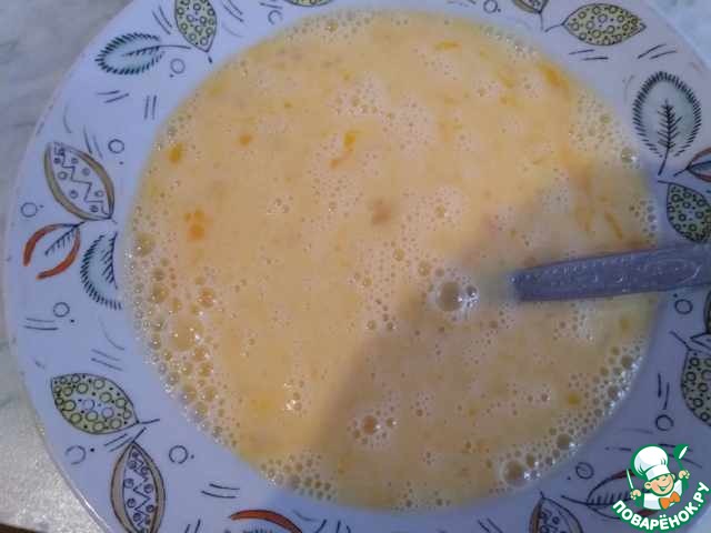 Яйца взбить с молоком, посолить по вкусу.