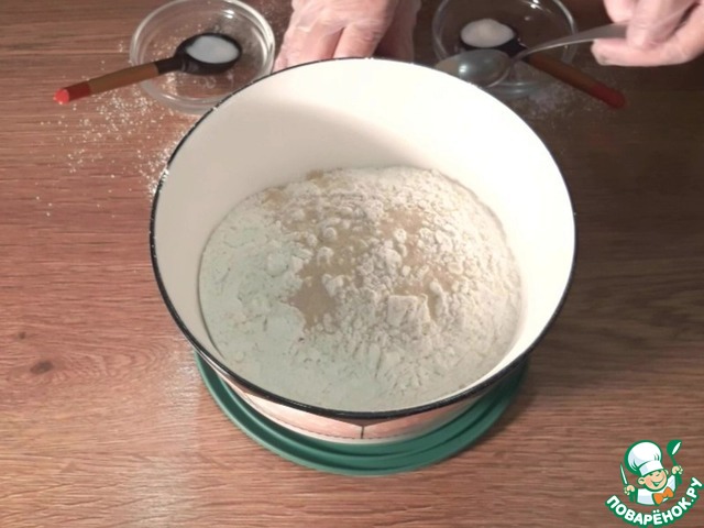 3... добавим дрожжи 1 ч. л., соль 1 ч. л. и сахар 1 ч. л...
