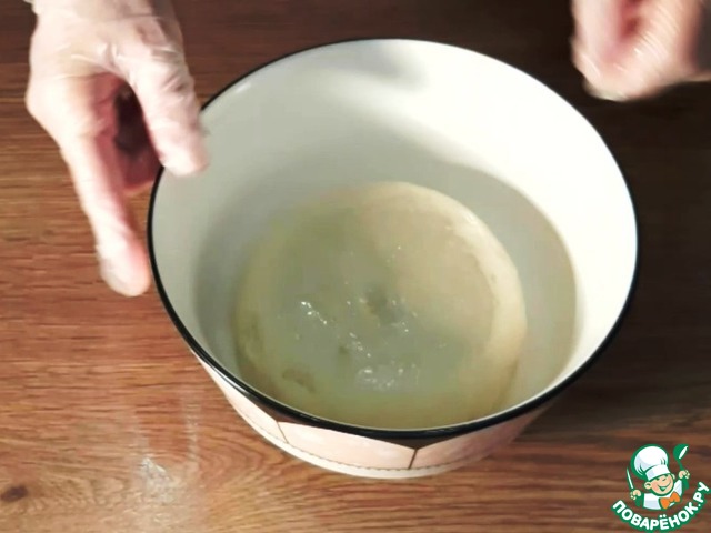 8. Выкладываем тесто в миску, смазанную растительным маслом, накрываем пленкой или пакетом, и ставим в теплое место на 20-30 минут.