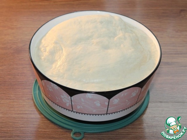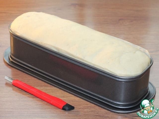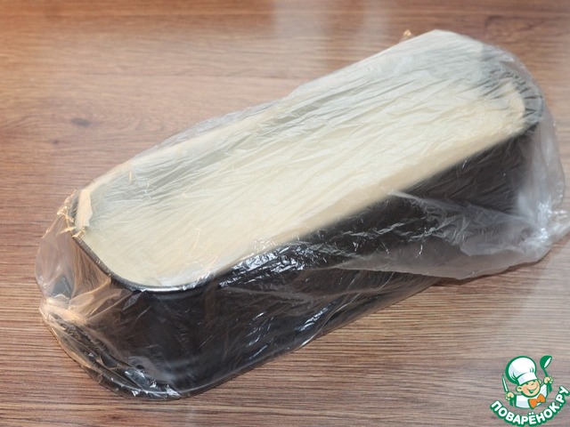 11. Выкладываем тесто в форму. Накрываем пленкой или пакетом, и оставляем в теплом месте на 15 минут.