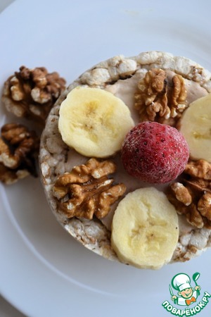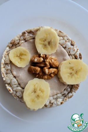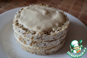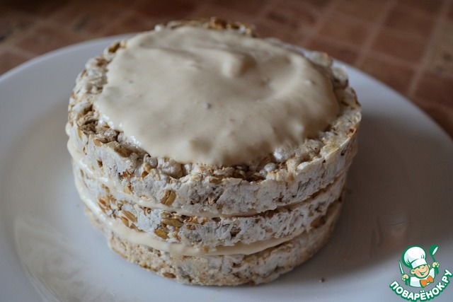Промазать получившимся кремом хлебцы, уложив их слоями: хлебец - крем - хлебец - крем.