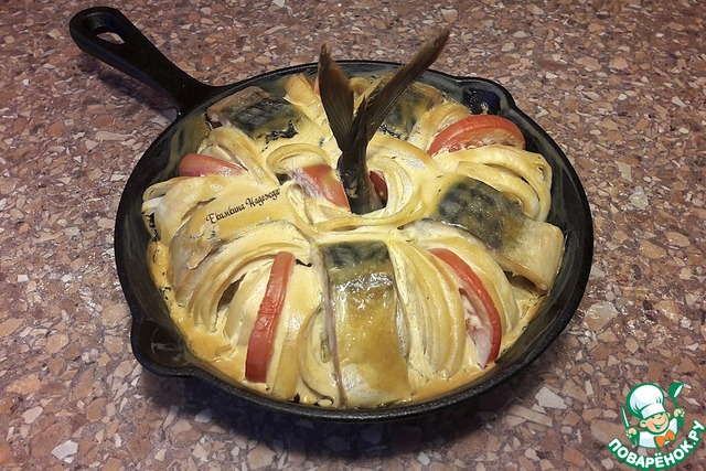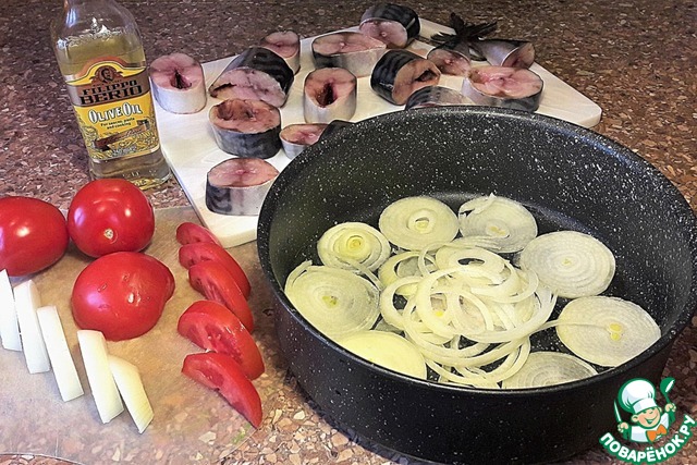 Рецепт «Скумбрия в маринаде на луковой подушке»: