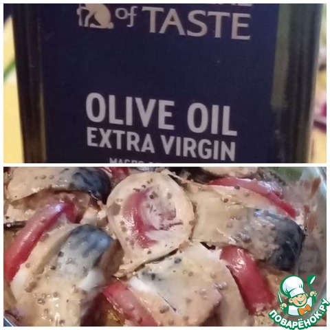 Знаю, что скумбрию из-за специфического запаха любят не все. Я предлагаю вашему вниманию прекрасный рецепт приготовления, проверенный годами. Скумбрия получается сочной, вкусной, без запаха. Маринад пропитывает рыбу и овощи - супер! Лучок слегка хрустит, а помидоры дают сок, что делает блюдо волшебно вкусным!!!
