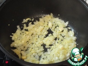 В чугунной сковороде или казане разогрейте растительное и сливочное масло, и прожарьте до мягкости мелко нарезанный лук и чеснок.