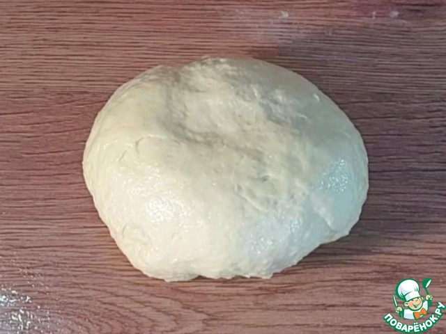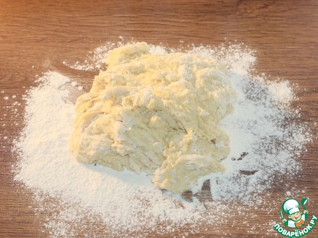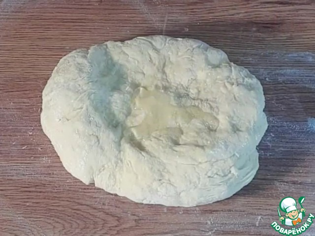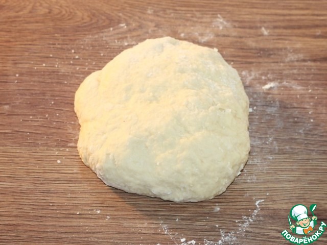 4. Выкладываем тесто на столешницу и вмешиваем 1/3 часть оставшейся муки.