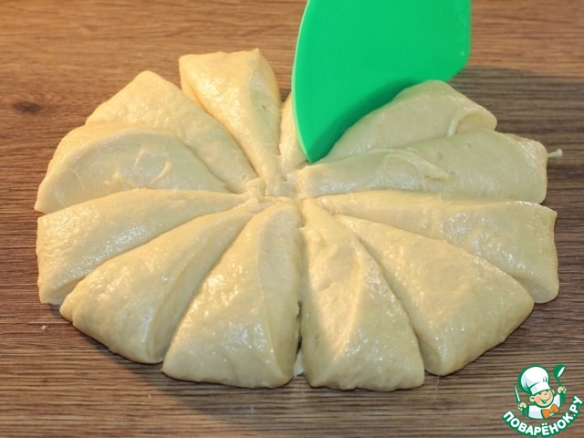 15. Аккуратно надрезаем верх колобков на 8 частей. Закрываем пленкой или пакетом и даем минут 15 "расстояться".