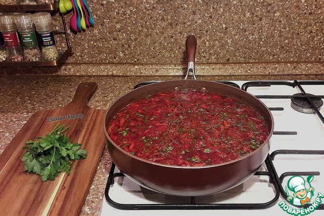 За пять минут до окончания варки всыпьте в борщ мелко нарезанную петрушку, посолите и поперчите