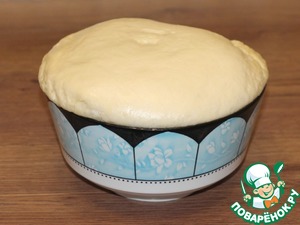 3. Тесто должно получиться мягкое, пластичное и не липнущее к рукам. Смазываем тесто и миску растительным маслом, закрываем пленкой и убираем в теплое место на 1-1,5 часа или до увеличения в 2-2,5 раза.