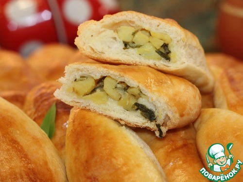 - Яйцо куриное (белок в тесто, желток на смазку пирогов) — 1 шт