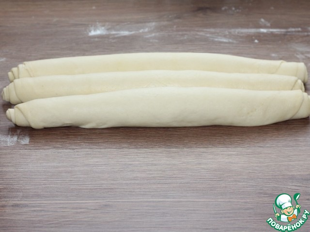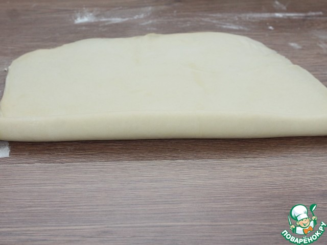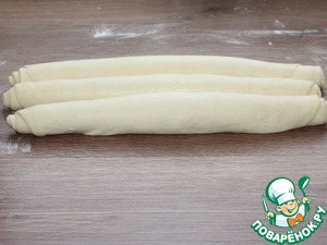 13. Скатываем пласт в рулет. С другими стопками, поступаем так же.