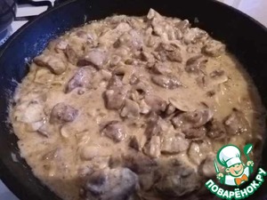 Ингредиенты для «Куриная печень с грибами и сметаной»: