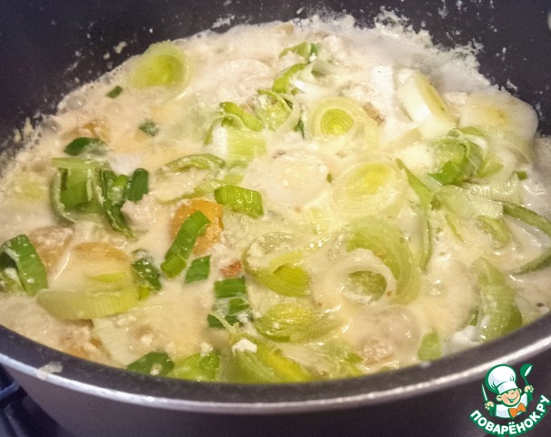 - Лук-порей (нарезанный кольцами) — 1 шт