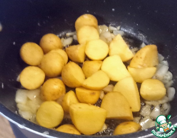 - Картофель (молодой, нарезанный на кусочки) — 200 г