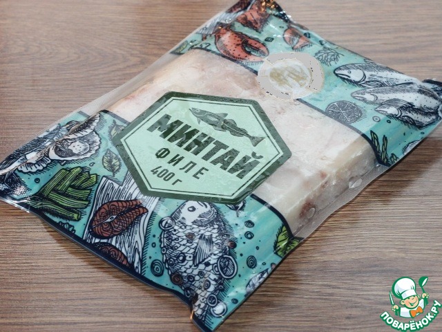- Минтай (в брикете, филе) — 400 г
