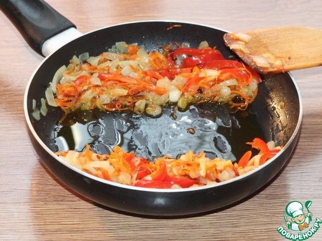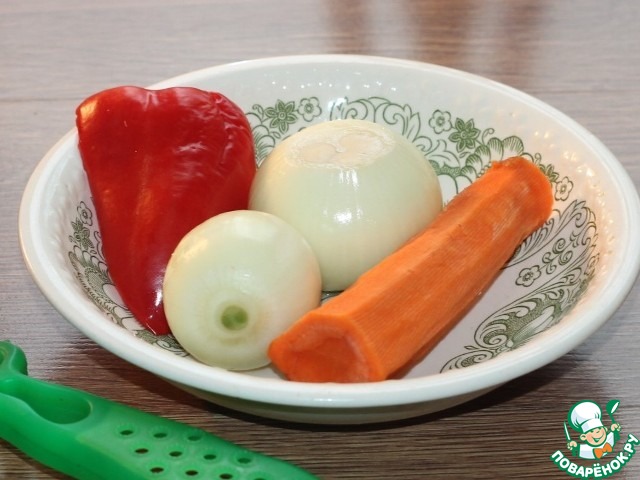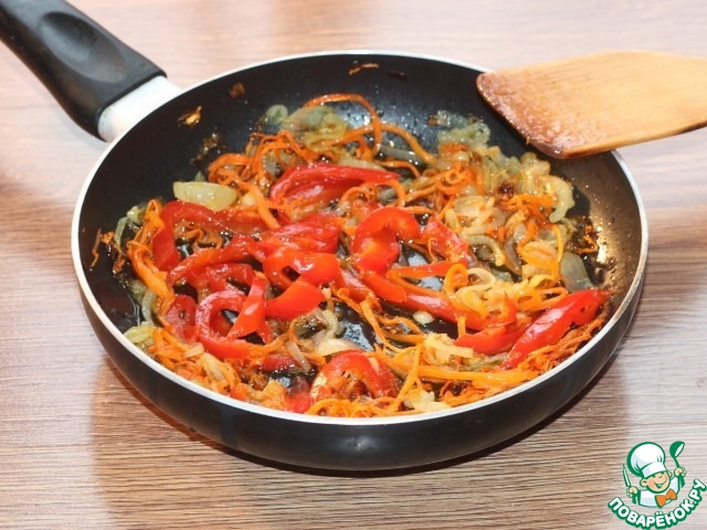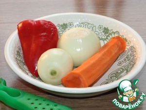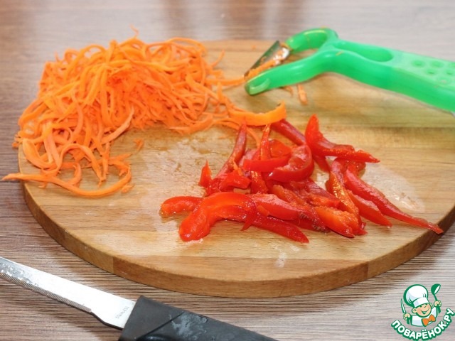 3... и нарезать: морковь и перец сладкий - соломкой,...