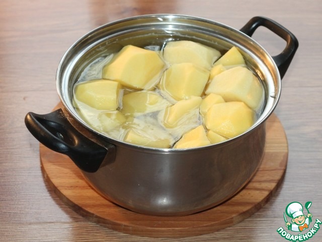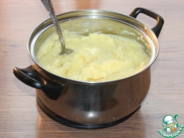 "Картофельное пюре или размятый картофель, — это блюдо, приготовленное путём разминания варёного или приготовленного картофеля, обычно с добавлением молока, сливочного масла, соли и перца. Обычно его подают в качестве гарнира. "