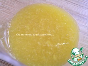 В свежевыжатый апельсиновый сок с мякотью добавьте сахар, ванилин, лимонную кислоту и цедру. Влейте масло и перемешайте до растворения кристаллов сахара.