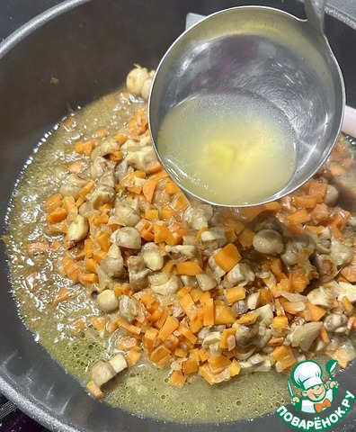 Я собрал с поверхности бульона пару половников жирности и в сковороду отправил.