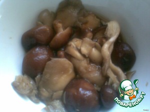 Опята и вешенки замочила в соевом соусе на 5-7 мин
