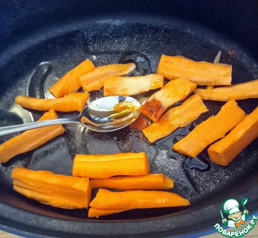 - Морковь (очистить кожу и порезать пополам) — 350 г