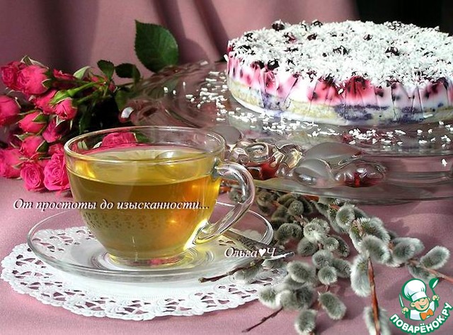 Очень нежный постный торт с ореховым бисквитом и ягодами в кокосовом желе. В меру сладкий, с кислинкой черники и смородины. Я готовила полпорции в форме 18 см, если использовать этот же размер формы при полном объеме ингредиентов, то торт получится в 2 раза выше и красивее. Но нам и такого размера хватило, готовила однажды к Вербному воскресенью. Попробуйте!