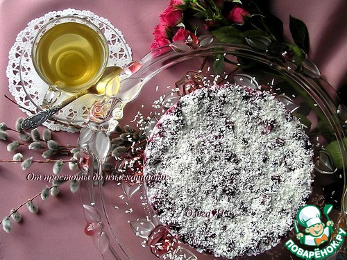 Посыпьте сверху кокосовой стружкой и уберите торт в холодильник на несколько часов для застывания.