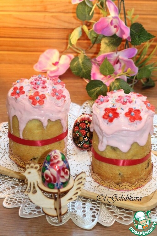 17. Остывшие куличи, я щедро украсила глазурью (ее получилось очень много, хватило бы еще на 1 кулич).