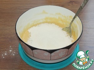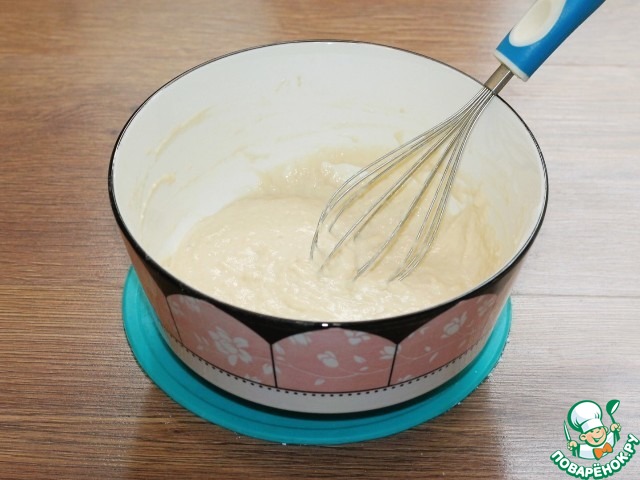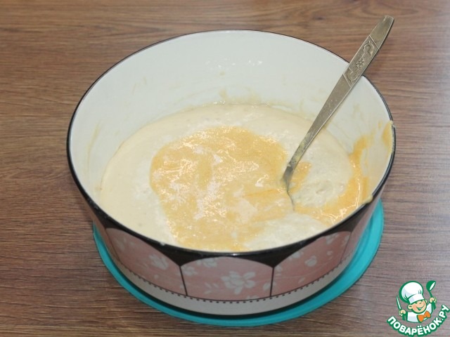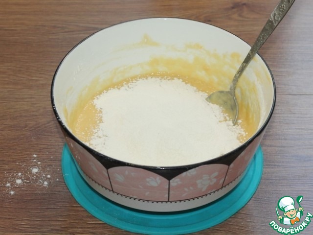 6. Добавляем оставшуюся муку (2/3 часть) и все тщательно вымешиваем