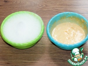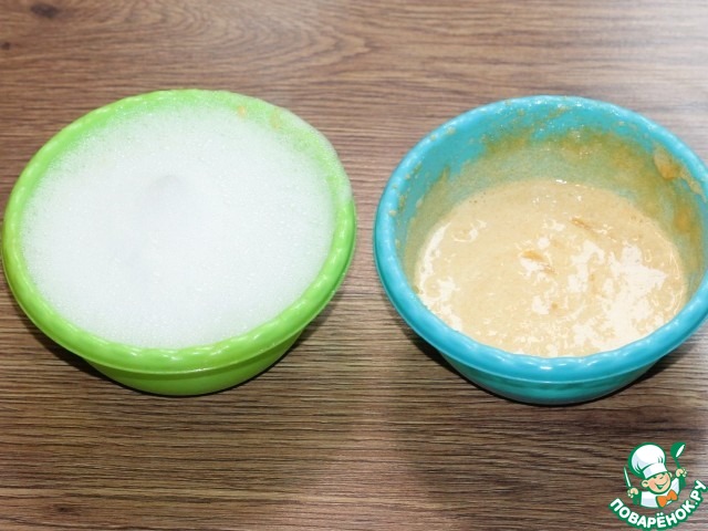 5. Яичные белки взбиваем с щепоткой соли до мягких пиков и добавляем в тесто.