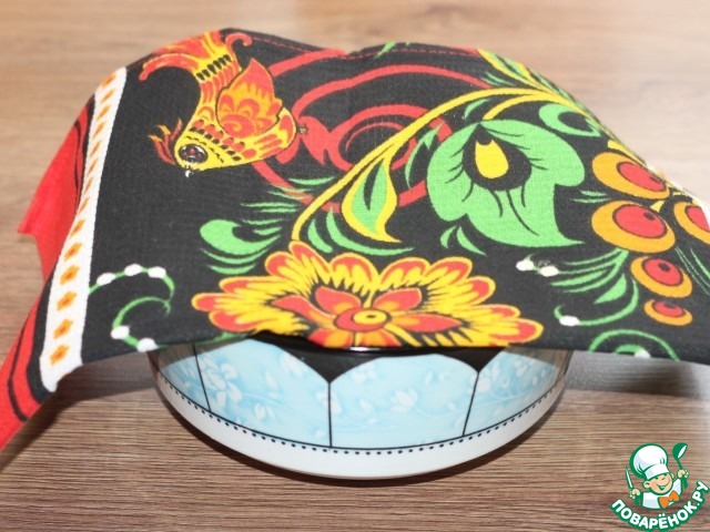 10. Закрываем миску пленкой или полотенцем, и ставим в теплое место для подъема теста в 2,5 раза, минут на 60.