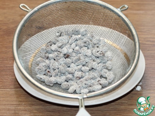 12. Затем изюм немного обсушиваем и обваливаем в муке (1-2 ст. л.).