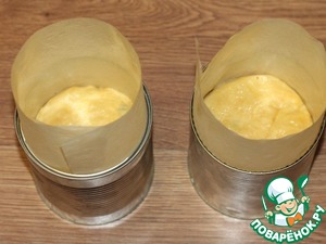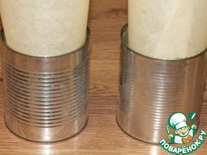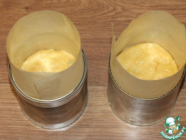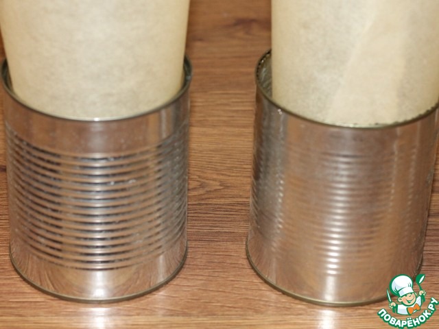 14. В качестве форм, я взяла жестяные банки по 800 мл. Банки я предварительно застелила бумагой для выпечки и смазала сливочным маслом (или растительным).