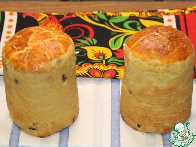 16. Выпекаем куличи в предварительно разогретой до t 190 гр духовке, минут 25 или до румяной корочки. Если верхушка кулича подгорает, то накройте (быстро) верх бумагой для выпечки, смоченной водой. Готовые куличи немного остужаем и извлекаем из форм (банок).