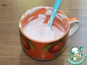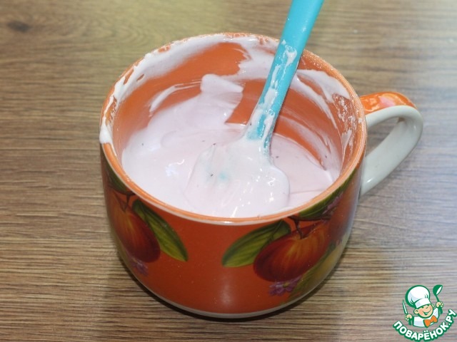 Глазурь: 1 яичный белок взбила с солью (щепотка) и постепенно добавила сахарную пудру 5-6 ст. л. И в самом конце добавила протертую бруснику 1 ст. л..