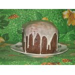 18. Затем вырезала из пастилы цветочки и смазала их соком брусники, украсила куличи. Но вот надо было дать глазури подсохнуть, а я сразу стала украшать и под тяжестью цветочков, она стала стекать.