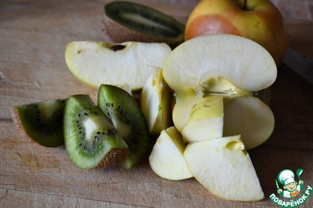 Нарезать киви и яблоки.