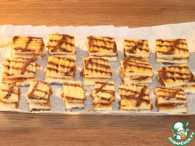 11. Затем нарезаем квадратики и формируем пирожное. Пирожные готовы!