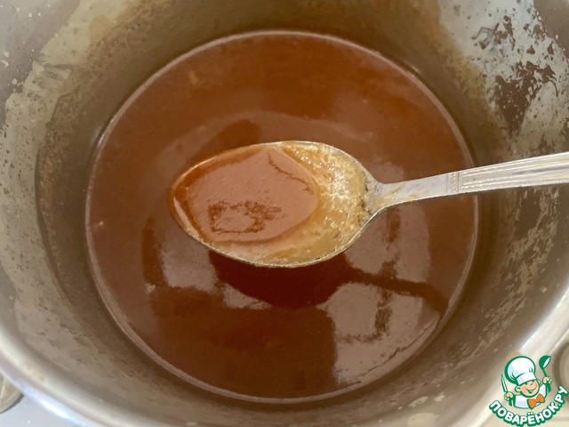 В данном рецепте я проварила весь сироп ровно 5 минут. Получилась на выходе темная карамель цвета жженого сахара.