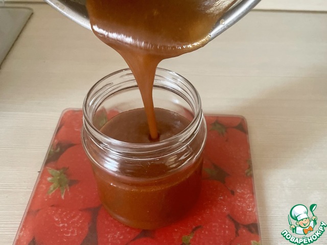 Переливаем горячую карамель в емкость для хранения, накрываем крышкой.