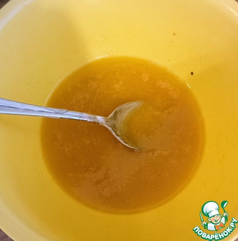 Отдельно в салатнице смешать взбитые яйца, мед и оливковое масло.
