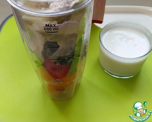Сложить ингредиенты смузи в стакан блендера, капусту лучше порезать помельче. Измельчить и взбить.