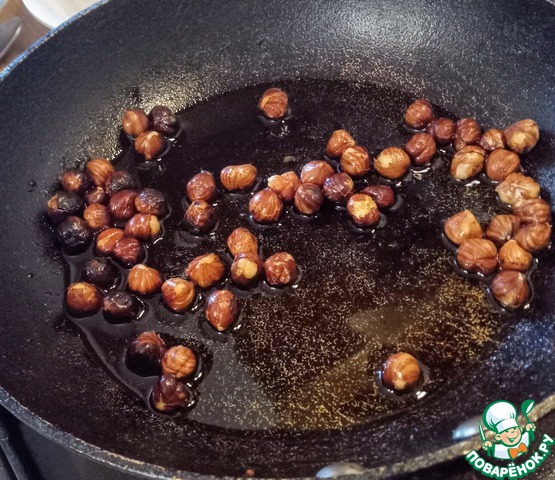 Фундук не люблю, по этому будут грецкие орехи. А в заправку добавлю вместо соли соевый соус, лимон с цедрой и ещё, не плохо бы, чуть чуть петрушки..