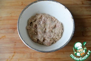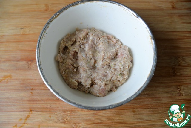 Готовый фарш должен, как тесто, липнуть к рукам. Далее фарш накрываем плёнкой и кладём в холодильник минимум на 1 час.